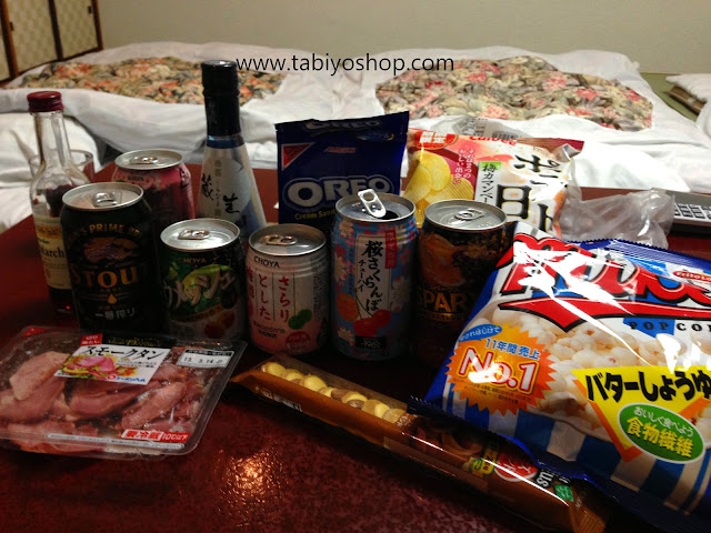 Usually, Japanese likes to drink cold beer after leaving the hot spring. Haha, these are the drinks and snack we had for our small nomikai (drinking party) in the room.