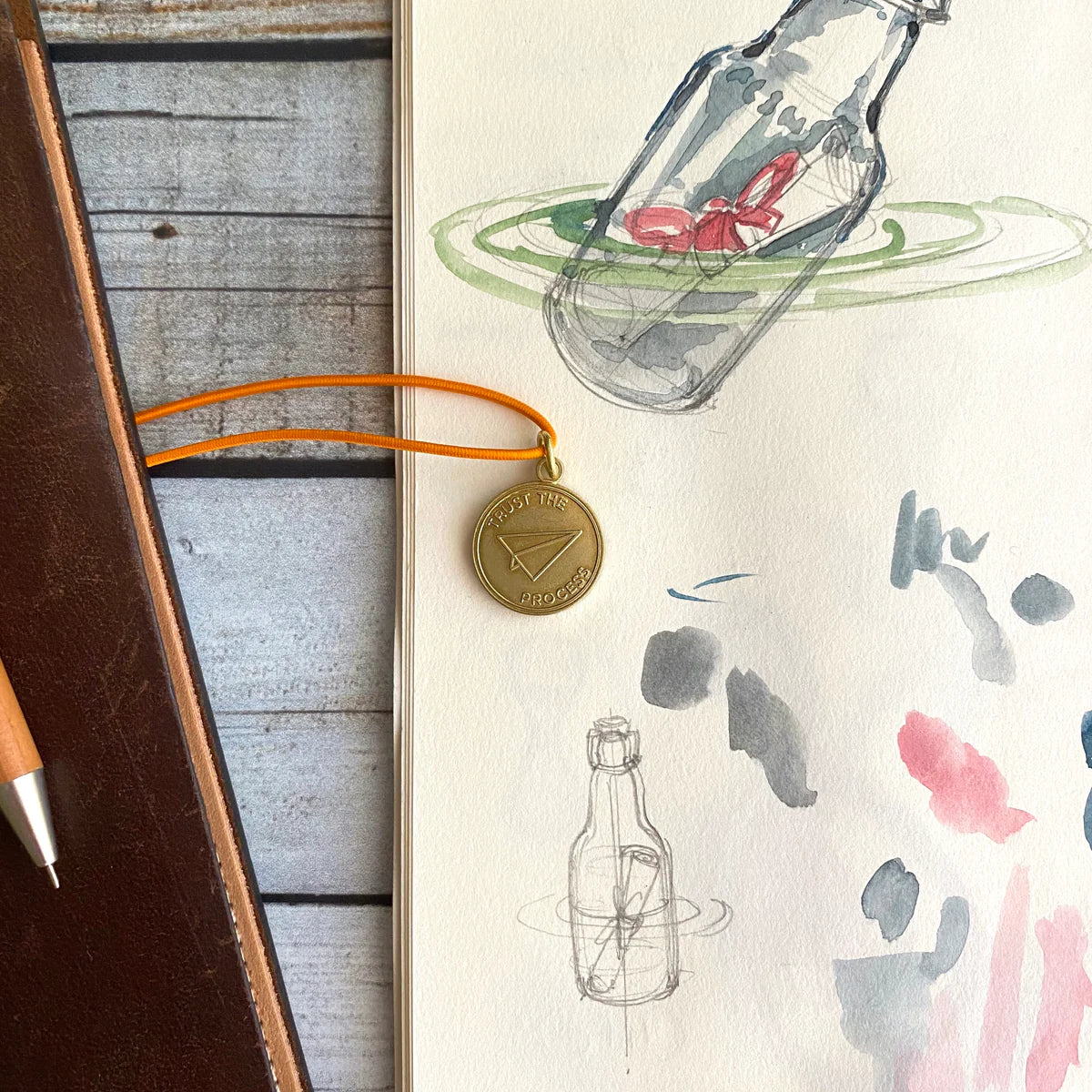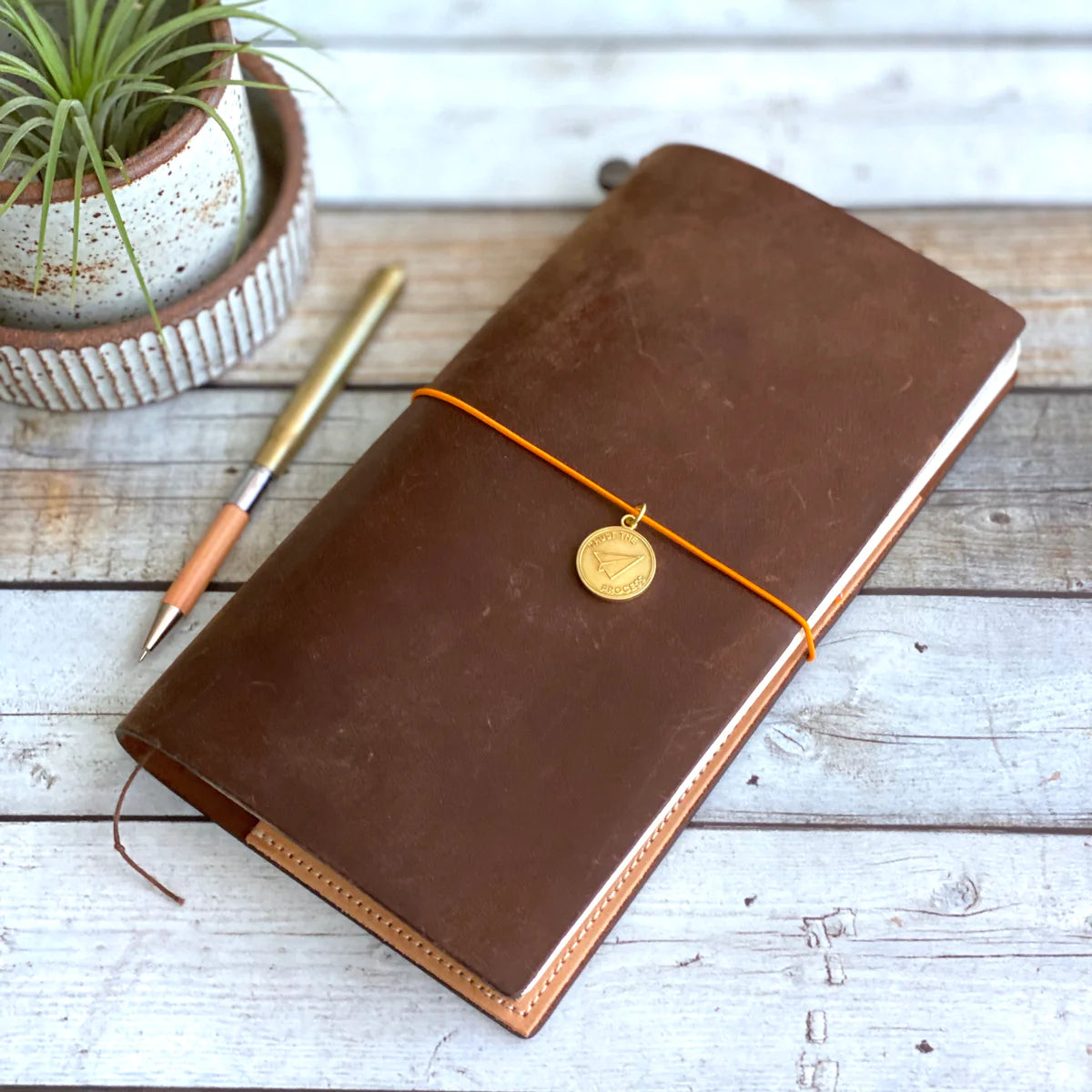 Each brass charm is pressed with the "Trust the Process" quote on the front and BK logo on the back. The charm will surely inspire you every time you open your TRAVELER'S Notebook.