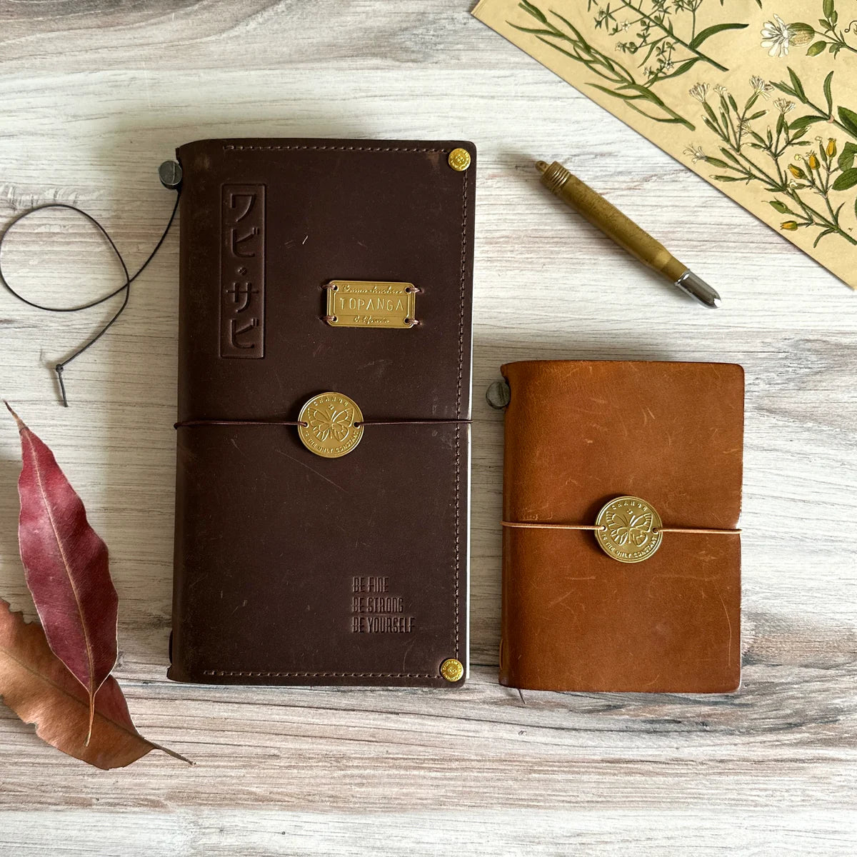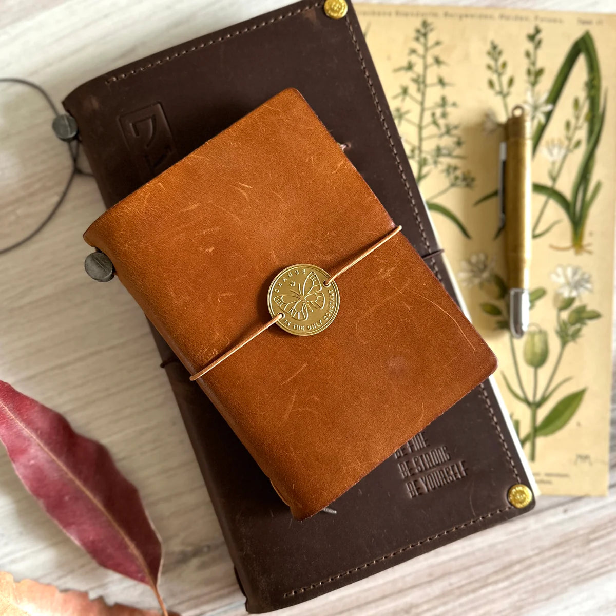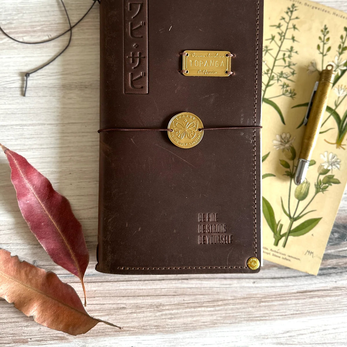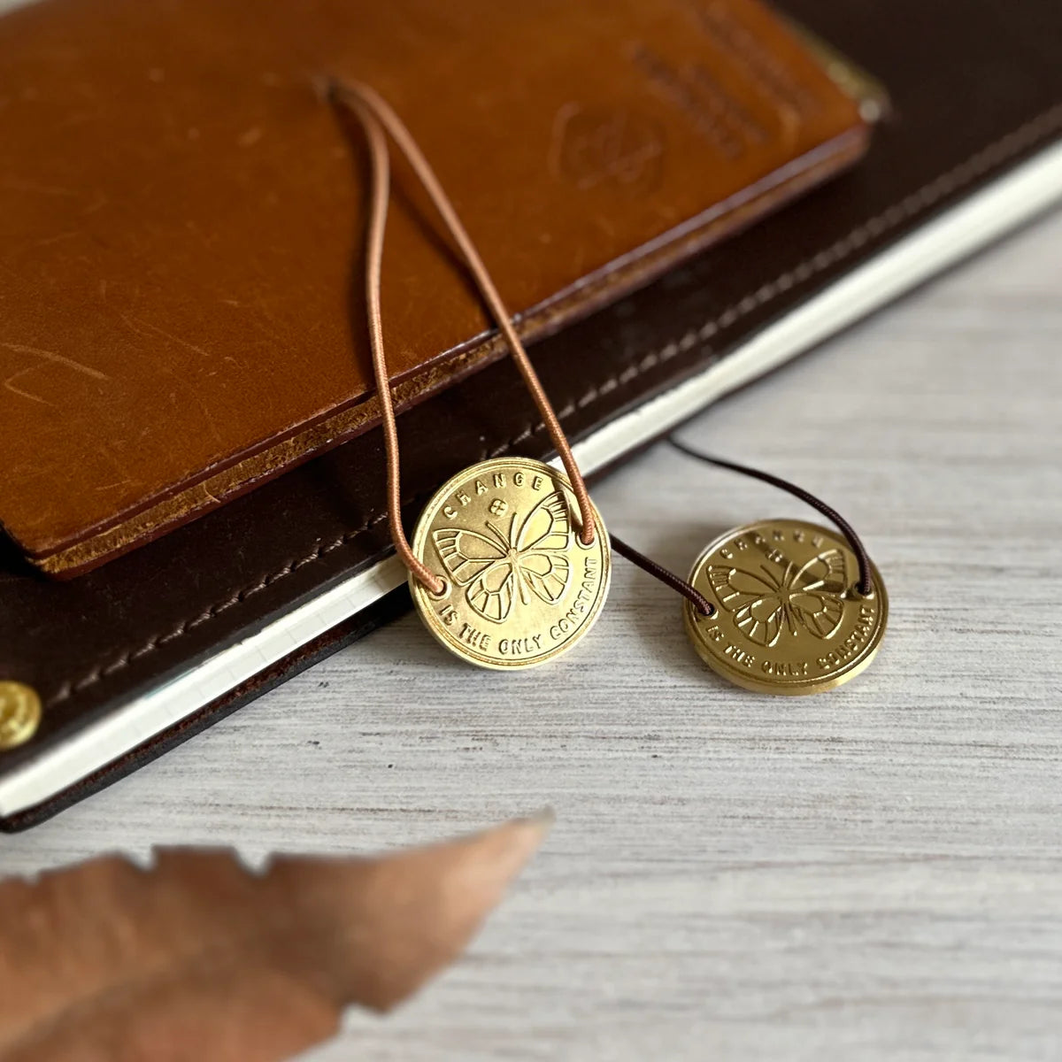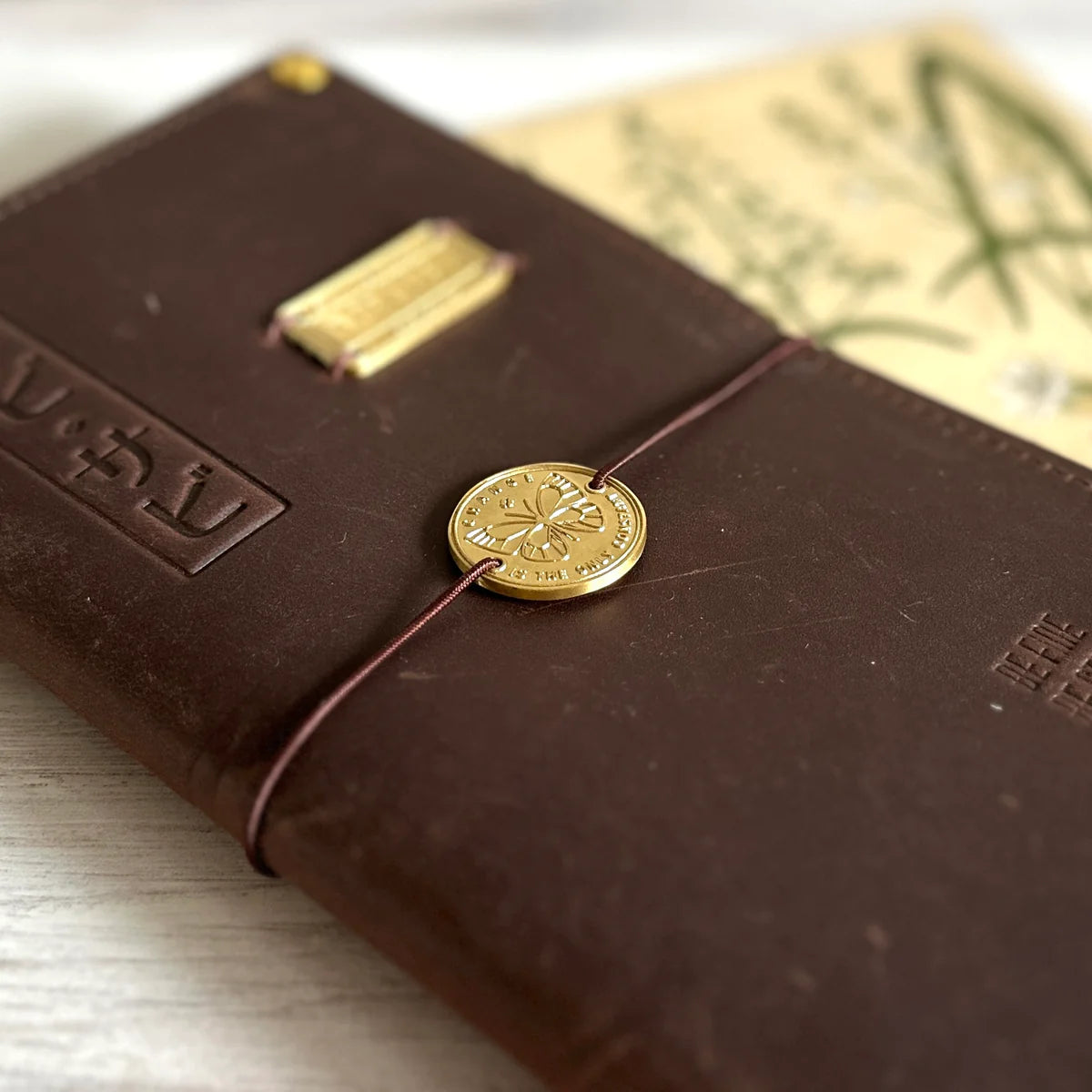 The brass plate can be easily attached to your TRAVELER'S notebook's elastic band, or sew it directly to your cover.