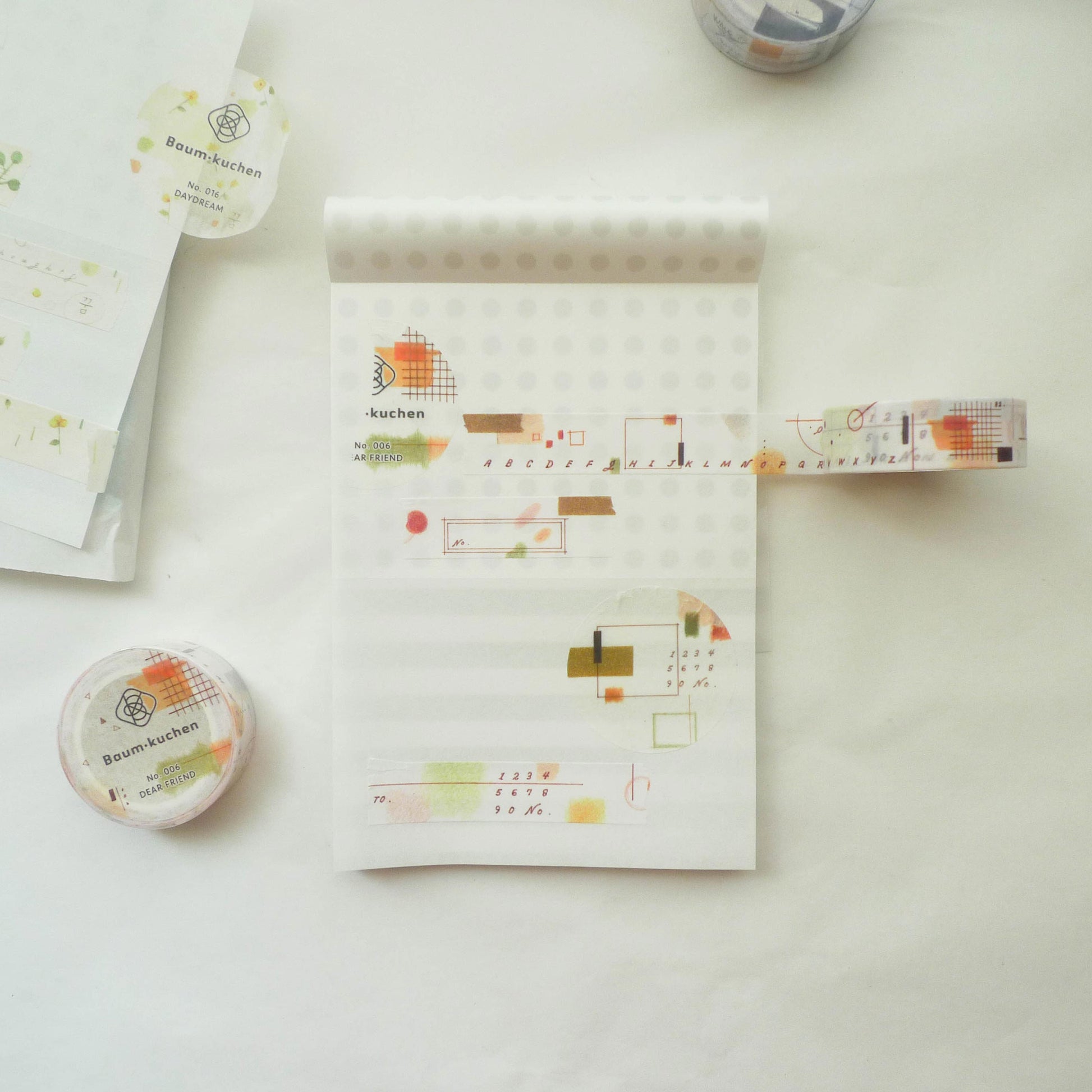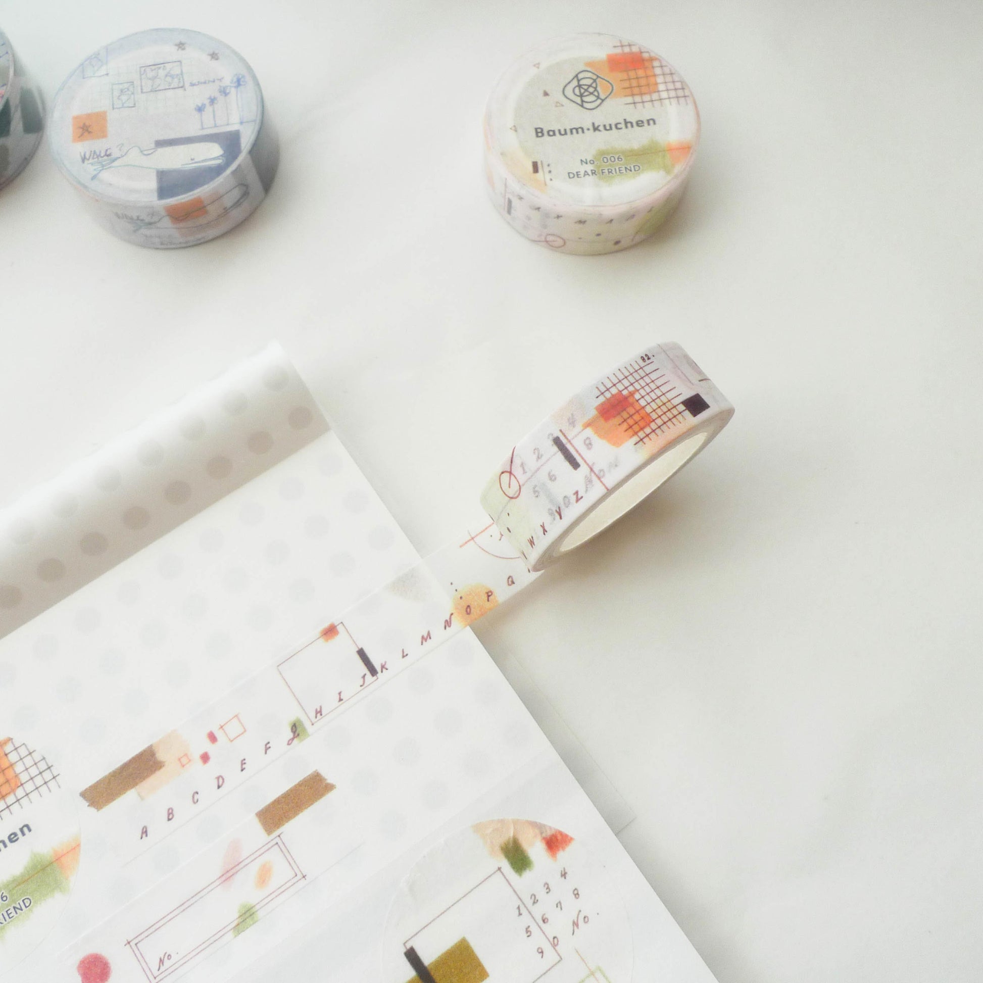 The BK team member Eunice designed the tape Dear Friend to express her love for analogue. Each element thoughtfully created by Eunice, this tape is beautiful to look at and meditating to add to the journal pages.