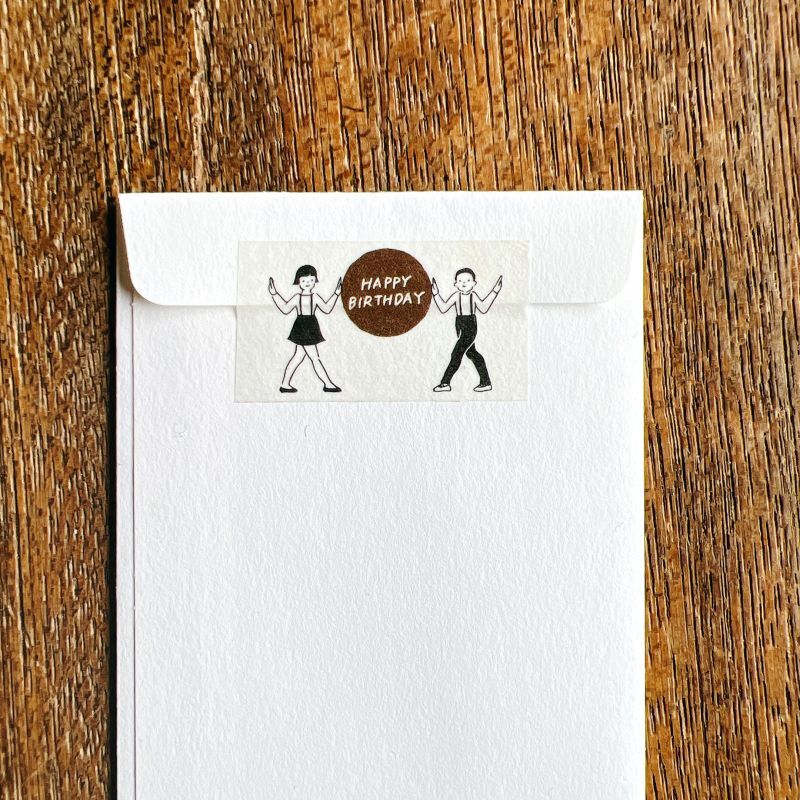 This masking tape features a lineup of geometric shapes with messages, such as "Happy birthday", "For you" and etc.